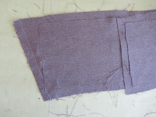 For the skirt I need three pieces: one front and two for the back. The measurement for my front piece was 24.5" so to keep it simple I cut two large pieces at 25" x 16.5," one will be cut in half later. You will need a button placket so cut two pieces at 3" x 9.25."